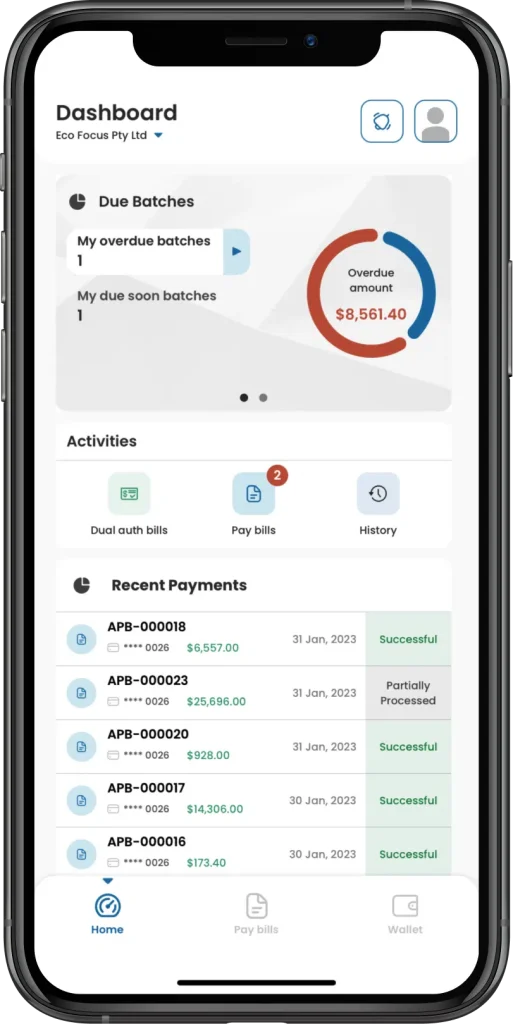 The ability to pay multiple suppliers in one place: Conveniently view and pay connected suppliers from one easy-to-use dashboard. Track, group, and batch-pay outstanding invoices with integration into your accounting software or via an ABA file upload to gain visibility on your outgoing payments.